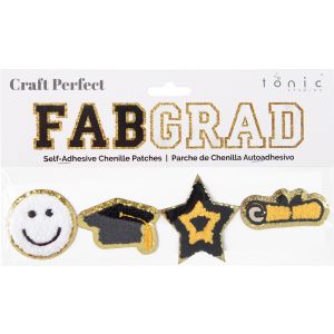 4. Chenille Self Adhesive Grad Patch Pack -Black (Pack of 2)