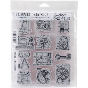 13. Tim Holtz Cling Stamps 7X8.5-Mini Blueprints #3 (Pack of 1)