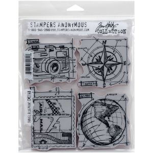 4. Tim Holtz Cling Stamps 7X8.5-Travel Blueprint (Pack of 1)