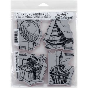 5. Tim Holtz Cling Stamps 7X8.5-Birthday Blueprint (Pack of 1)