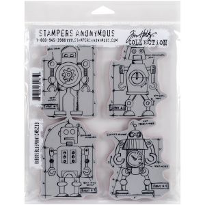 14. Tim Holtz Cling Stamps 7X8.5-Robots Blueprint (Pack of 1)